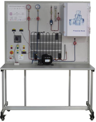 制冷原理实训考核装置敞开式设计,安装有制冷管路设备,配各种电路原理图实训板,并将电路所需的电器元件安装在实训板上,学生可根据电路原理图的要求进行制冷电路的接线实训、制冷回路相关指示数据的分析、制冷回路常见故障分析等。提供复合式(单门直冷式、双门直冷式、双门间冷式)电冰箱电气控制线路的实际工业用电器,形象直观,可靠性好,使用寿命长, 可自行连接线路,并任意设置故障点。适用于技工院校、职业学校作为制冷基本技能的实训。