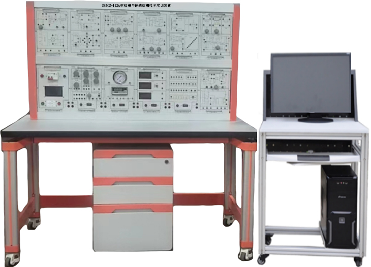 检测与传感检测技术实训实训平台由实训桌、实训台架、存储柜、实训挂箱组件、传感器组件等组成。