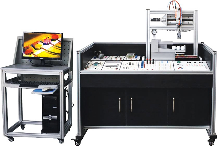 配置双轴机器人作为装配的执行机构,具有X轴、Y轴两个方向的执行能力,可完成智能抓取物料放料等功能;配置有行程开关,光电传感器,光纤传感器等,可确保各执行器的准确定位;超出最大行程时,具有硬件自动保护功能,确保系统安全及人身安全;本装置为通用的模块化的多功能装置,各功能端口完全开放,可以能过不同的接线来完成各种不同的功能,为学生的创新设计提供了广阔的发挥空间。