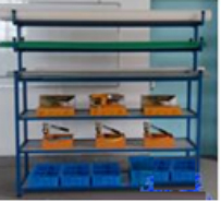 3、模块中间模块设计为货架形式,配置有大量零件工具盒,适合安装实训使用。