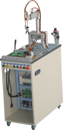 由滚珠丝杠、滑杆推出部件、分类料仓、步进电机、步进驱动器、电感传感器、开关电源、可编程序控制器、按钮、I/O接口板、通讯接口板、电气网孔板、多种类型电磁阀及气缸组成,主要完成按工件类型分类,将工件推入料仓。
