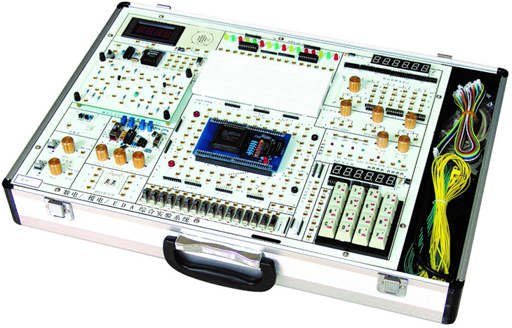 数电摸电EDA综合实验箱,电子电路综合实验系统,本综合实验系统能够完成"电路基础"、"模拟电子技术"、"数字电子技术"、"ISP在系统编程EDA实验"、"VHDL设计"、"电子系统综合设计"等课程的实验。在实验方式上采用全新理念,保留了经典的传统基础功能模块验证性实验,增加了对中大规模复杂系统的设计、分析和管理实验,为学生提供了二次开发的良好环境,加强了学生对系统设计概念的培养和实践,以适应电子系统日趋数字化、复杂化和大规模集成化发展的需要,真正做到学用结合,为创新性人才的培养打下良好基础。
