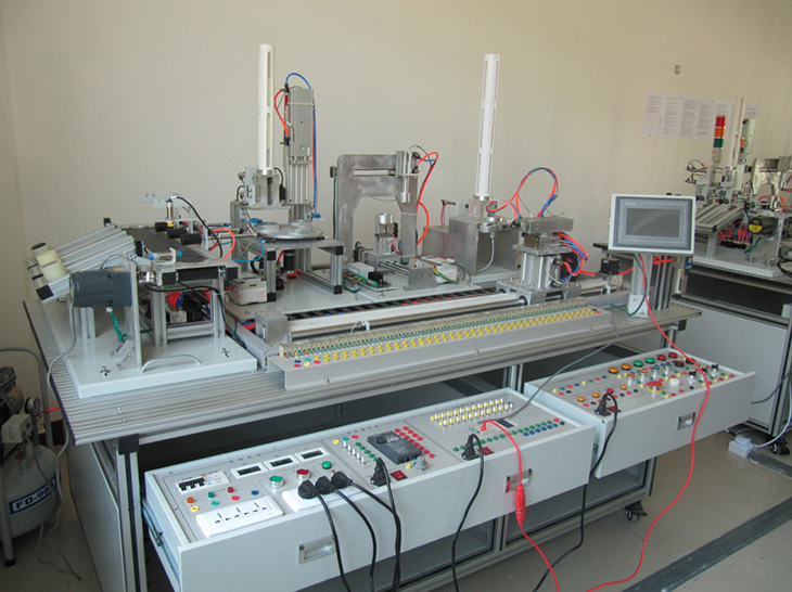 自动化综合实训装置由由铝合金导轨式实训台、典型的机电一体化设备的机械部件、PLC模块、变频器模块、按钮模块、电源模块、模拟生产设备实训模块、接线端子排和各种传感器、计算机等组成。整体结构采用开放式和拆装式,实训装置用于机械部件组装,可根据现有的机械部件组装生产设备,也可添加机械部件组装其他生产设备,使整个装置能够灵活的按教学或竞赛要求组装具有生产功能的机电一体化设备。模块采用标准结构和抽屉式模块放置架,互换性强;按具有生产性功能和整合学习功能的原则确定模块内容,使教学或竞赛时可方便的选择需要的模块。设备需完全符合电工电子全国职业技能大赛所要求,同时还要求具有可拓展功能,可以组成更加大型的生产模拟系统,以配合各个用户学校不同层次,不同专业的教学及培训要求。