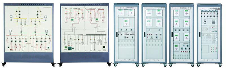 变电站综合自动化实训装置,该系统由一次系统屏、二次保护柜、变电站后台系统三部分组成。一次系统采用典型的110kV变电站工程为模型,设两台主变,均为有载调压型;设两路进线,110kV侧和10kV侧采用单母分段,35kV侧采用单母分段带旁母接线。二次部分全部采用微机型继电保护装置和测控装置,分为四个保护柜安装;能上传数据,接受监控主机命令,完全满足"四遥"功能和远动的要求。同时采用多串口卡,很好地解决了保护装置与后台系统间通讯瓶颈问题。