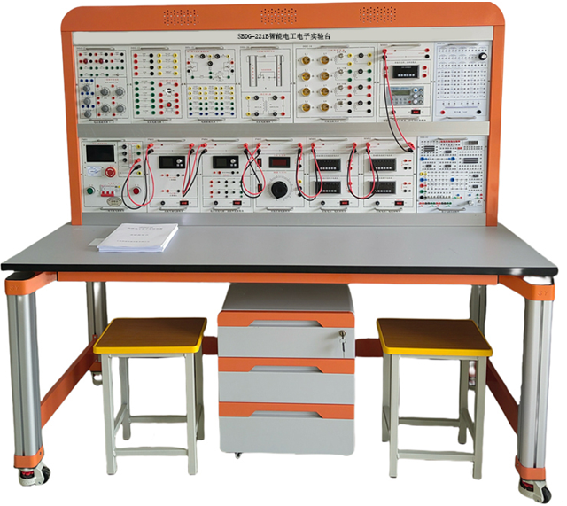 四、智能电工电子实验台主要配置及功能:实验平台由实验桌、实验台架、存储柜、实验挂箱组件、配件等组成。