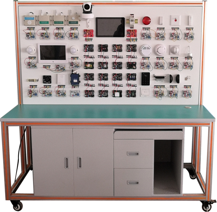 物联网综合应用实训系统、物联网综合实训室由物联网工程应用创新系统、物联网关键技术实验台、物联网多网技术综合教学开发平台组成。通过对感知识别、通讯传输、组网技术以及数据分析的物联网递进架构体系进行创新研发和生产设计。结合无线射频识别技术、传感网技术、短距离无线通讯技术、移动支付技术、家用智能化、城市管理等领域,形成了一套完整的融实训创新为一体的教学开发系统。