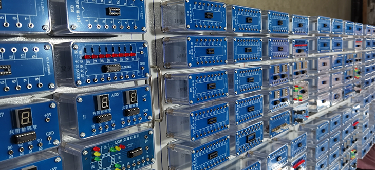 电工电子创新实训模块为磁吸式塑料有机盒及PCB板构成,且包括多个组合模块,为学生提供了一个进行综合应用、创新实训,可充分发挥学生潜能的完全开放的平台。