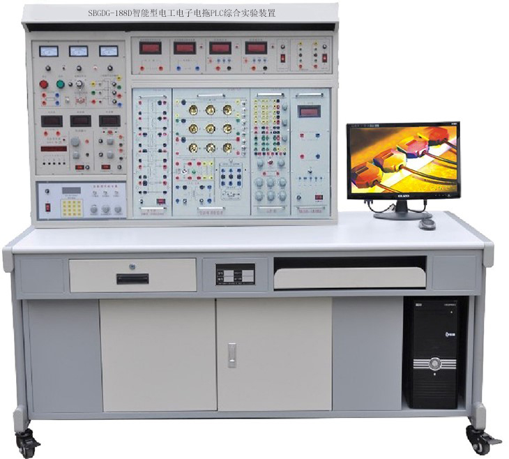 "智能型电工电子拖动综合实验装置(带PLC实验)"是本公司在总结国内电工实验设备基础上采用成熟的技术推出的新型实验装置,综合了目前我国大学本科、专科、中专及职校"电路分析""电工基础""电工学" "模拟电子技术" "数字电路""电机控制""继电接触控制""电力拖动" "PLC可编程控制"等课程实验大纲的要求而研制,特别适用于高等院校现有实验设备的更新换代,及中专、职校等新建或扩建实验室,迅速开设实验课提供了理想的实验设备。
