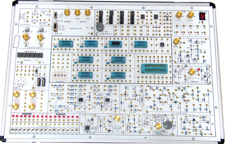 3、实验连线插孔采用锁紧式镀金插孔,通过焊接固定在实验板上,不松动,不氧化,寿命长,连接可靠,维修方便、简捷;