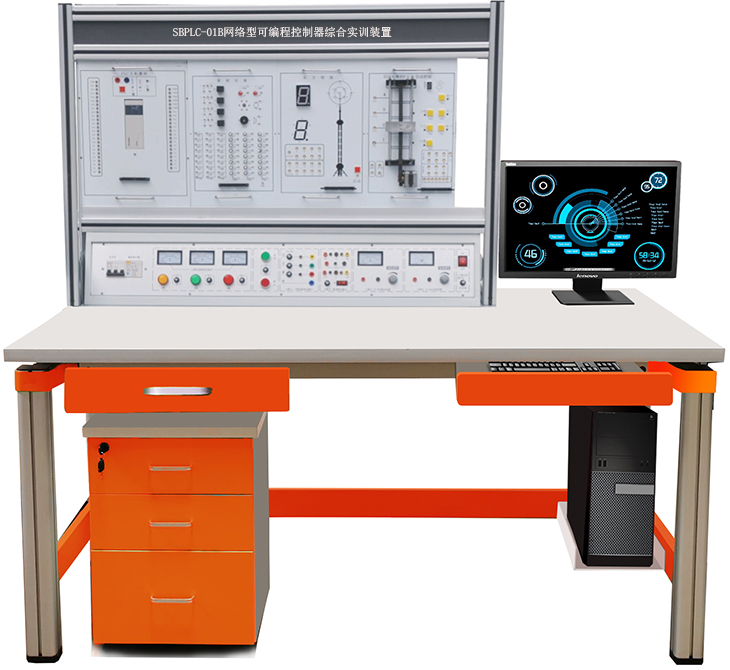 实训装置由控制屏、实训桌、主机实训组件、实训模块(含丰富的工业现场设备模拟实训对象)、变频器挂箱、触摸屏挂箱、交直流电机、总线单元、等组成。