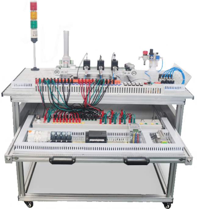 物料分拣实训装置(变频控制)主要元器件由传感器、气缸、气动电磁阀、三相电机、变频器等组成。装置控制系统采用西门子S7-200PLC,通过变频器对传送带电机进行速度调节,并把传送的物料进行材质与颜色的分辨,将分辨出来的物料用气缸推入到指定的仓位内。适合高等院校“机电工程系”自动化课程的教学/实训。开放式教学、在提升趣味性的同时提高学生动手能力是产品的优势;轻便、美观、易学习是产品的特色。