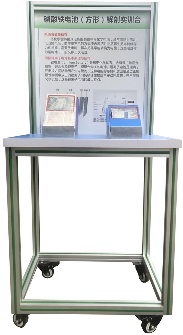 5.实训台配备解剖完整磷酸铁锂单体电池2件,真实展示磷酸铁锂电池内部结构。
