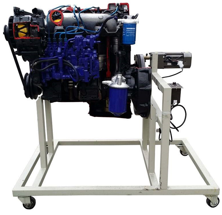 东方红704 拖拉机发动机解剖运行实训台采用东方红704 拖拉机(翻新扬动4100增压中冷/3)发动机总成进行剖面处理,各部件齐全,剖面位置合理,能全面展示发动机内外部结构和部件的运动情况,适用于发动机原理和机械机构的教学。