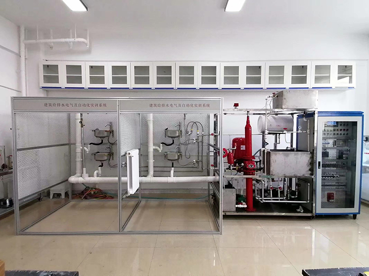 建筑给排水电气及自动化实训装置,建筑给排水电气及自动化实训设备,建筑电气实训室为建筑电气强电类项目的设计、安装、调试、维修训练基地。主要承担建筑设备工程技术、楼宇智能化工程技术、建筑电气工程技术、工业设备安装技术、给排水工程技术、暖通空调工程技术等专业的建筑电气控制技术、建筑供配电技术、流体力学、给排水工程技术、暖通空调工程技术、信息网络与综合布线、楼宇智能化技术、安防系统、消防系统实验实验(训)教学任务,同时承担相关科研及对外科技服务工作。可进行一下项目认识低压电器和电气控制柜、电流电压测量电路及连接、电能测量电路及连接、照明安装、三相交流异步电动机直接启动和停止控制、自动往返控制线路的连接、两台电动机顺序控制线路的连接、Y— 启动控制线路的连接、能耗制动控制线路的连接、 双速电动机制动控制线路的连接。建筑给排水系统安装实训系统由室内消火栓实训演示系统和自动水喷淋实训演示系统两子系统组成,两系统共用模拟消防水池和屋面消防水箱,本系统基本情况为:安装工程管理综合实训室主要面向供热通风与空调工程技术专业、建筑设备工程技术(空调与制冷)专业、建筑给排水专业、建筑电气专业的学生,为学生提供了与建筑安装工程项目管理相关的实训环境。