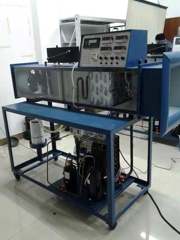 制冷压缩机、风冷冷凝器、风机盘管蒸发器、实验风洞、蒸气加湿器、电加热器、保障蒸发器被压的引风机、进、出风洞的空气参数测试系统、控制调节系统。