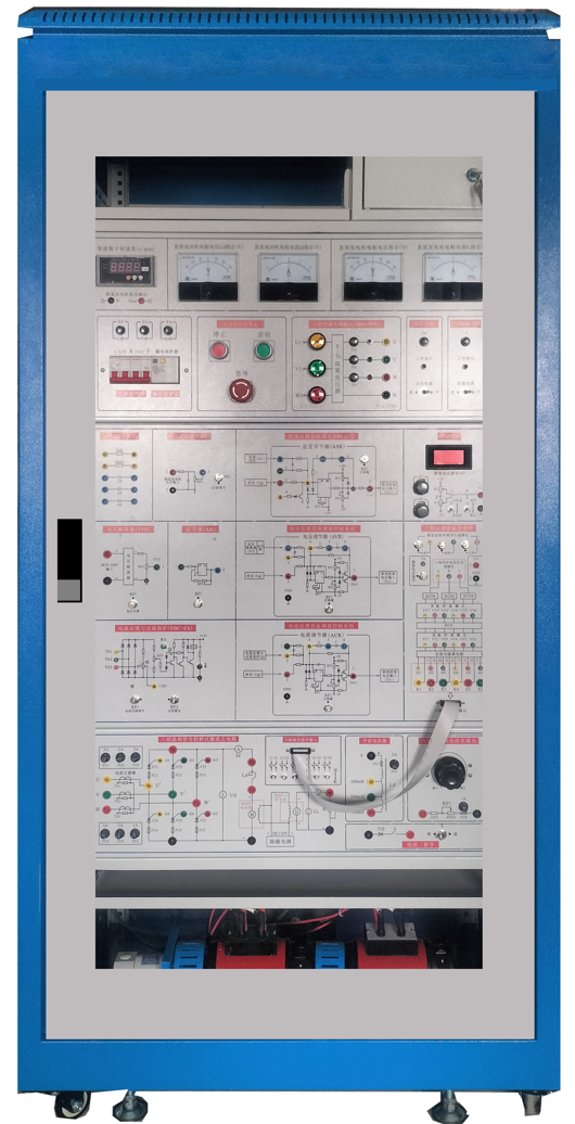 电力电子直流传动系统调试与维修实训装置采用工业控制柜结构(设有玻璃门、直观清晰)。设备带有三相漏电保护器,熔断器,电源开关,电源指示灯等功能。