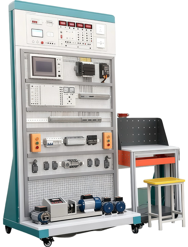 电气及电机控制实训考核装置、机电一体化电气控制综合实训设备采用模块化布局,各电气元件与机械部件可灵活组合;装置带移动轮,便于教学场景中的布局调整;兼具电气控制与机械传动的实训功能,能实现机电系统的综合演练。