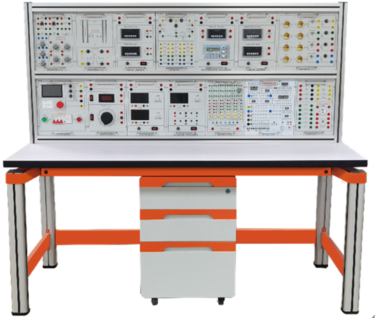 网络化基础电工实验平台由实验桌、实验台架、存储柜、实验挂箱组件、配件等组成。