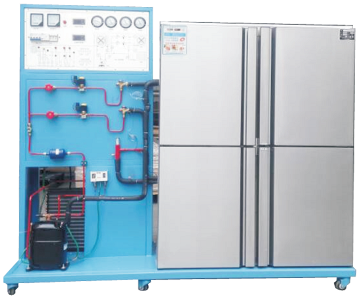 3、电气控制系统、一机两库教学实训系统匹配了相应的电气控制系统,从制冷系统到电气控制系统,都是围绕数学而设计的。通过本台实验,能较熟悉进行操作、排除故障,通过对这套设备的学习,学生可以达到劳动部有关部门颁发的制冷工等级的中级水平。