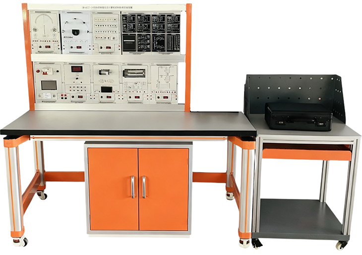 由铝合金控制屏、实验模块、实验桌和实验导线等组成。实验模块由交流电源、运放模拟环节、控制计算机(学校自备)及I/O板卡、数据采集控制板和控制对象等组成。