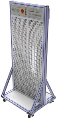 1. 整体尺寸:W800*D700*H1829mm 2. 网孔板尺寸:W718*D40*H1490mm 3. 平台采用立式结构开放式设计,主体采用40*80型材做骨架,周边采用Q235冷扎钢板做封板,表面静电喷塑处理,整机既坚固耐用,又美观大方。底部装有带脚垫万向轮,万向轮移动时用,可调脚固定时用,移动固定两相宜。顶部安装电源模块,中部为实训区域,依据任务安装不同挂板。 |