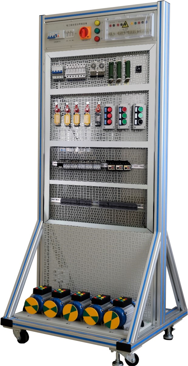 电力拖动实训设备采用采用万能网孔板开放式设计,自由组合的思路,平台配套电力拖动实训套件箱,学员根据实训项目的要求,选取器件、组合成相应的实训电路,完成电力拖动线路安装、接线、调试及工艺整理,满足实训教学、鉴定培训及职业竞赛的需要。